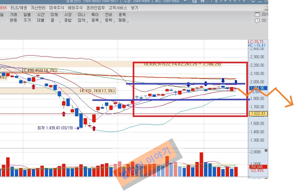 이대로 2000선을 간다?? 물론 요즘장에서 불가능한건 아니지만 2000간다와 밑으로 떨어진다를 예측해본다면